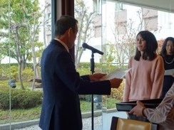 初めに社長あいさつがあり、つづいて「ベスト・レセプタント賞」3名の方々が表彰されました。 小池統括部長の閉会のあいさつの後、みんなで集合写真を撮りました。 |